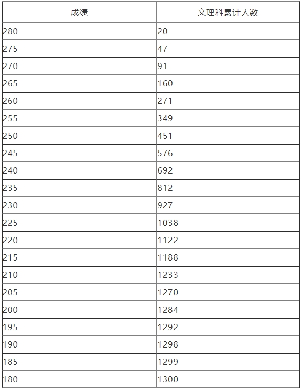 注:累计人数指该对应分数及以上考生累计人数