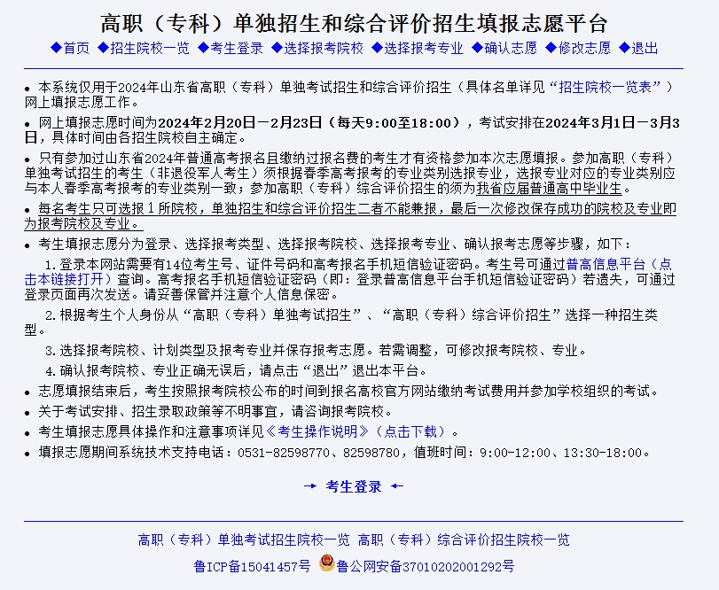 高职(专科)单独招生和综合评价招生报名官方入口:https://wsbm.sdzk.cn/gzdz/