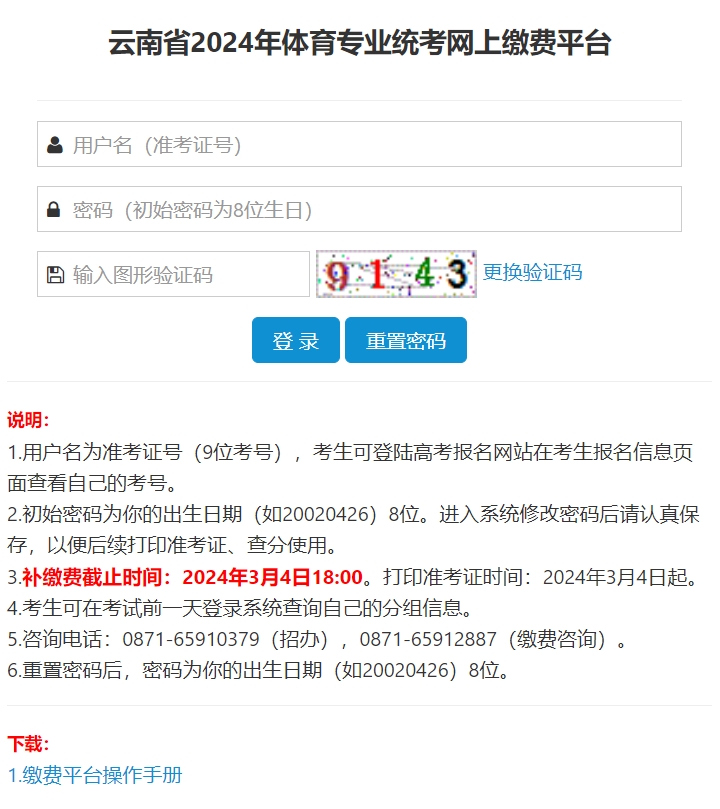 考前请考生自行登录缴费系统(https://tygk.ynnu.edu.cn/)下载准考证并打印。考生打印准考证后,应及时核对本人姓名、准考证号、性别、专项、轮次等信息,如有差错请于考试前及时向县市区招生考试机构反映;考生入场时须持本人纸质准考证、身份证,自觉接受身份核验。考试前请考生自备一张纸质准考证和身份证复印件交给学校领队,学校领队收齐备用。