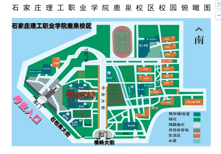 石家庄理工职业学院鹿泉校区(从石家庄理工职业学院东门进入。地址:石家庄市鹿泉区中山路西端转石柏南大街,325路公交终点站)。