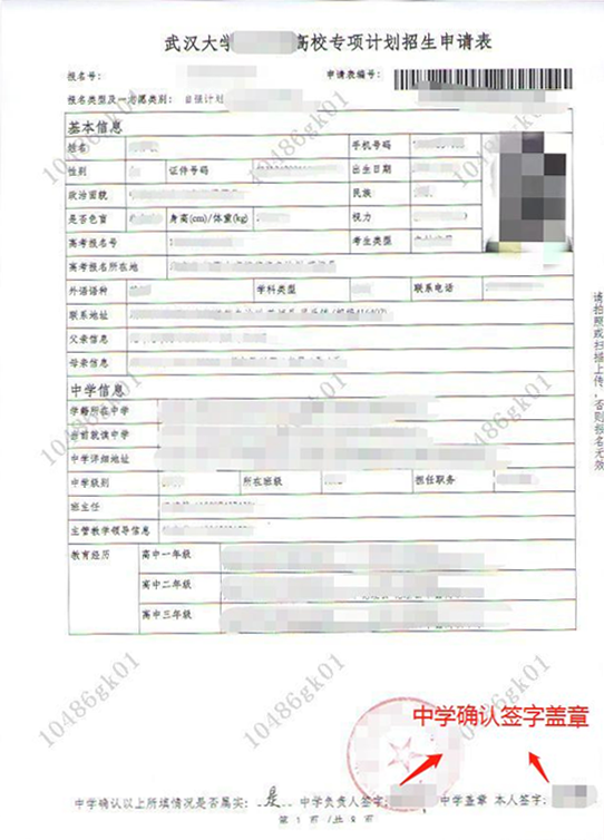 (1)报名系统生成的申请表(须本人签字并经中学校长签字加盖中学公章确认),申请表包含基本信息、中学信息、成绩信息、个人陈述、志愿信息、综合信息和户籍学籍信息等;