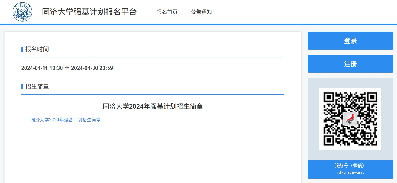 - 同济大学2024年强基计划报名入口:https://bm.chsi.com.cn/jcxkzs/sch/10247 —掌上高考—中国教育在线