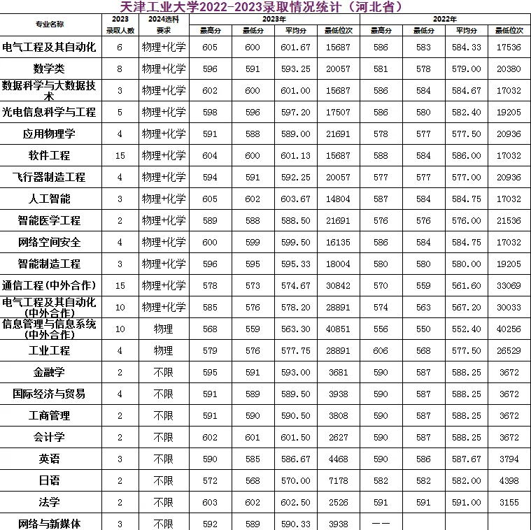 天津工业大学2022-2023录取情况统计(河北省)