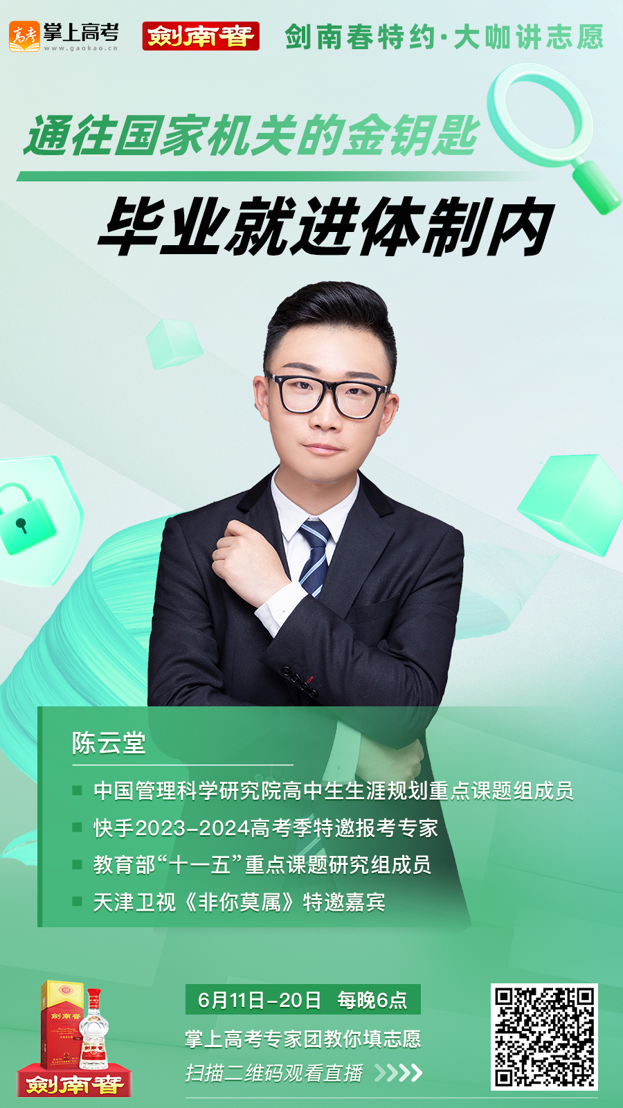 为助力考生进行科学填报,帮助广大考生了解志愿填报模式,6月11日-6月20日,中国教育在线·掌上高考特别推出“剑南春特约·大咖讲志愿——2024志愿填报系列公益直播”活动,为各位考生和家长分享志愿填报相关干货,为大家答疑解惑。