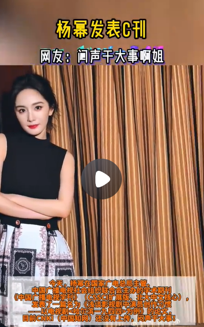 温馨提示:高考结束,你的分数能上哪些大学和专业?点击此处,快来测一测吧!6月21日,杨幂在由国家广电总局监管和中国广播电视社会组织联合会主办的学术杂志《中国广播电视学刊》(CSSCI扩展版、北大中文核心)上发表了一篇题为《浅谈影视剧中演员创作习惯——以电视剧为例》的研究论文。值得注意的是,这篇论文目前还未在CNKI(中国知网)上发布。许多网民都认为杨幂在背后默默地完成了重要的任务”!
