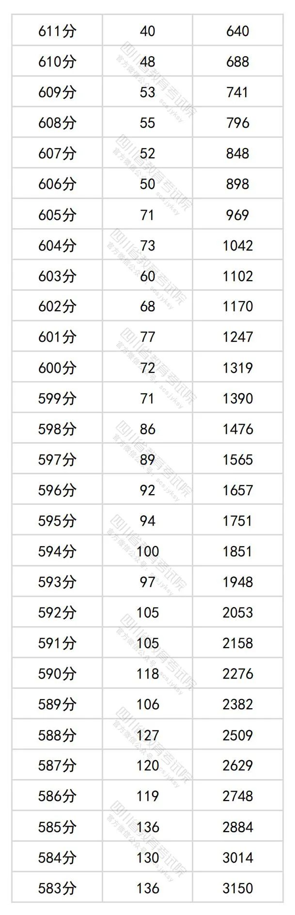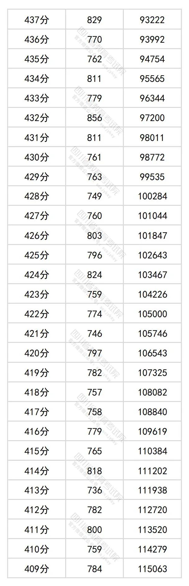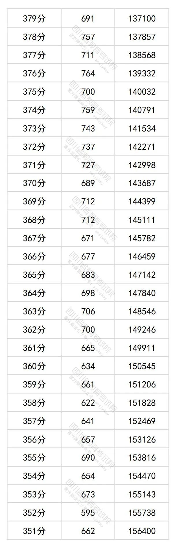 以下是考试院公布的考生成绩一分一段表(文科)10015