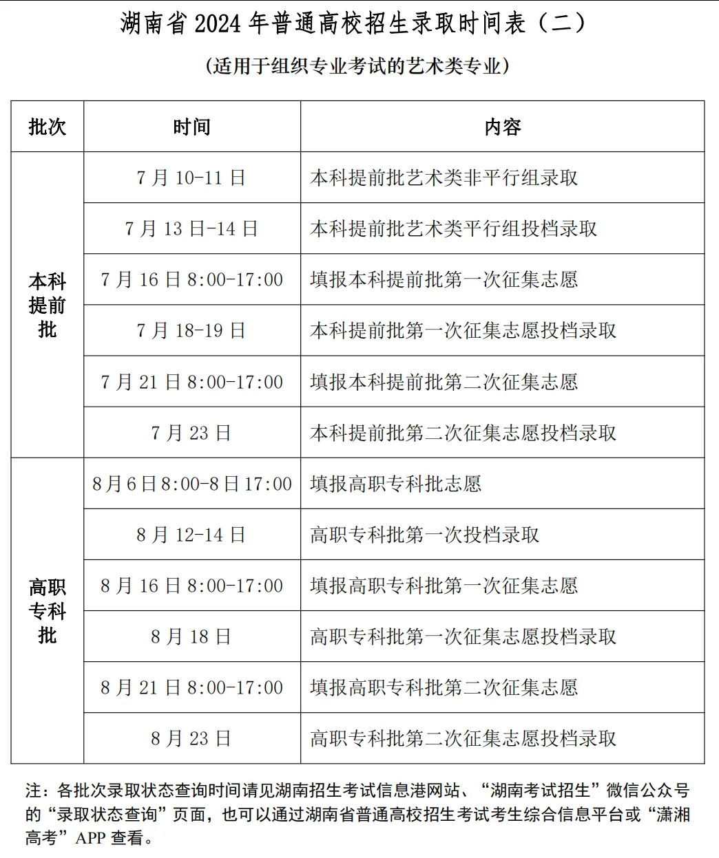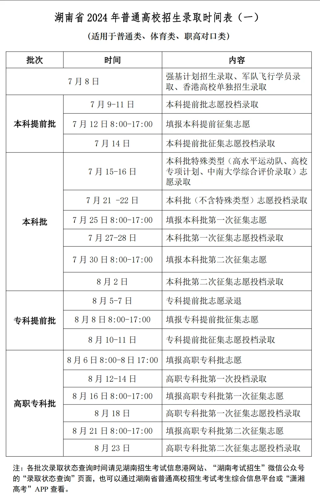 温馨提示:模拟志愿填报用掌上高考,信息丰富准确,一键生成“冲-稳-保”志愿。点击此处,开始精准填报吧!湖南省2024年普通高校招生网上填报志愿及录取时间表