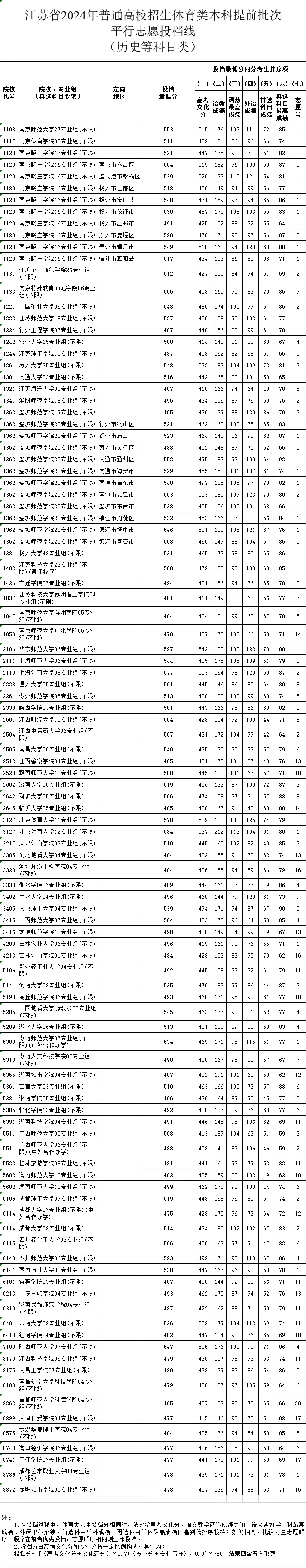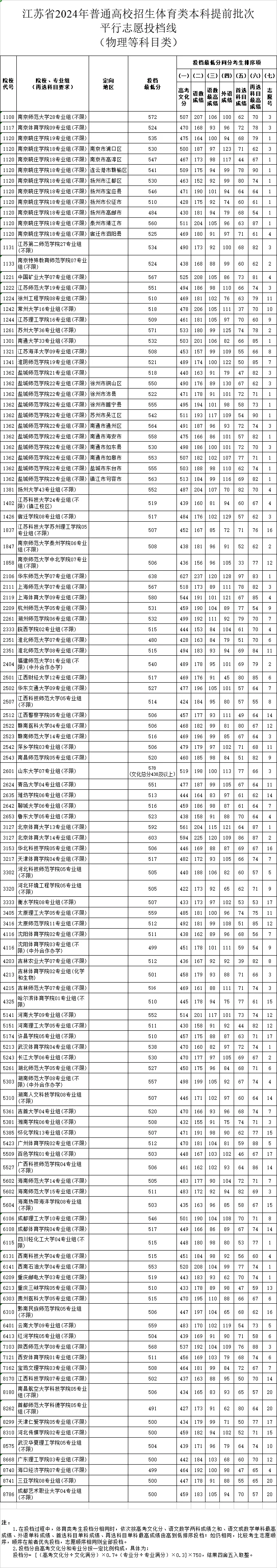 温馨提示:模拟志愿填报用掌上高考,信息丰富准确,一键生成“冲-稳-保”志愿。点击此处,开始精准填报吧!江苏省2024年普通高校招生体育类本科提前批次平行志愿投档线