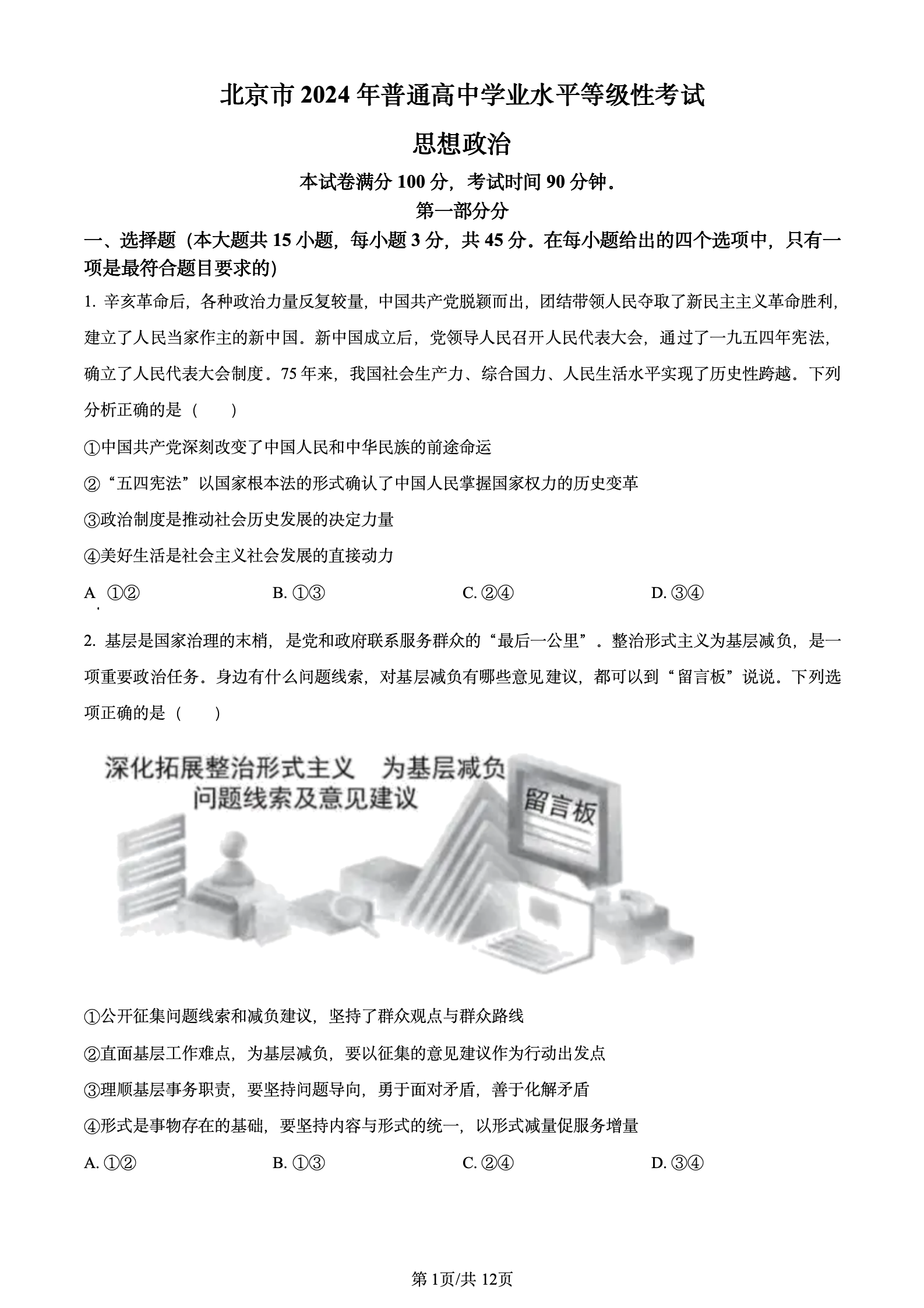 温馨提示:模拟志愿填报用掌上高考,信息丰富准确,一键生成“冲-稳-保”志愿。点击此处,开始精准填报吧!2024年高考于6月7日起开始举行,中国教育在线·掌上高考在考试后及时发布2024年高考试题、答案以及高考试题解析。请广大考生、家长及时关注,同时祝广大考生在2024年高考中取得优异成绩,圆梦理想大学!以下是2024年高考北京历史试题及答案: