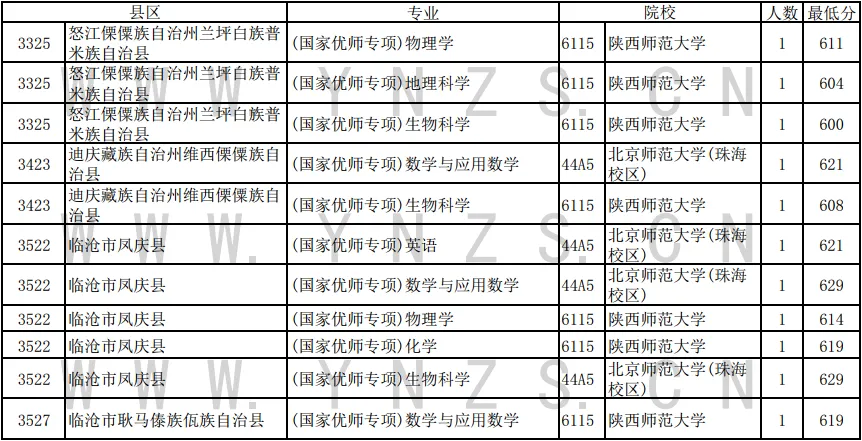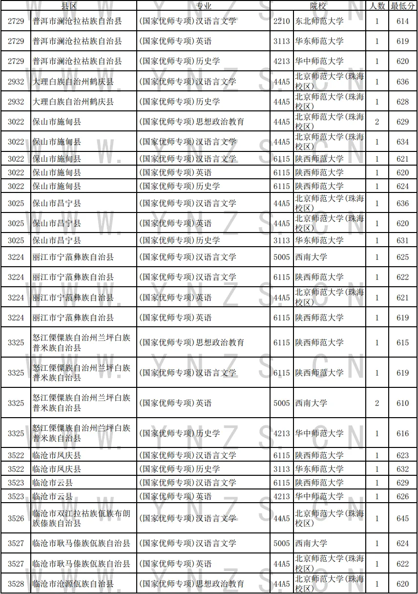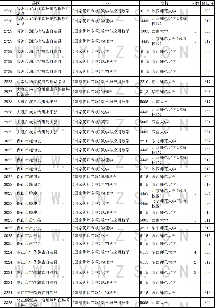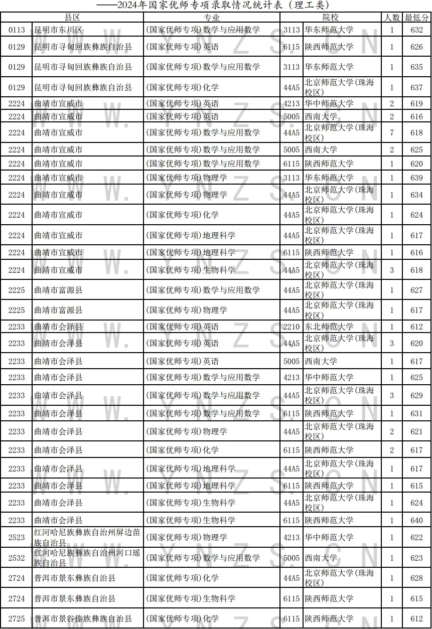 云南2024年高考国家优师专项录取情况统计表(7月9日)