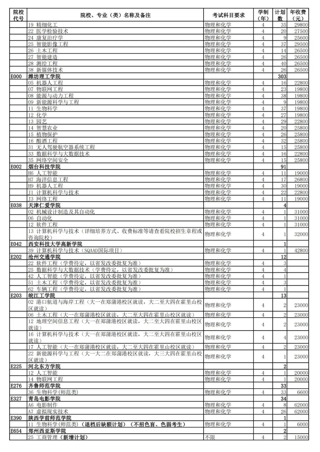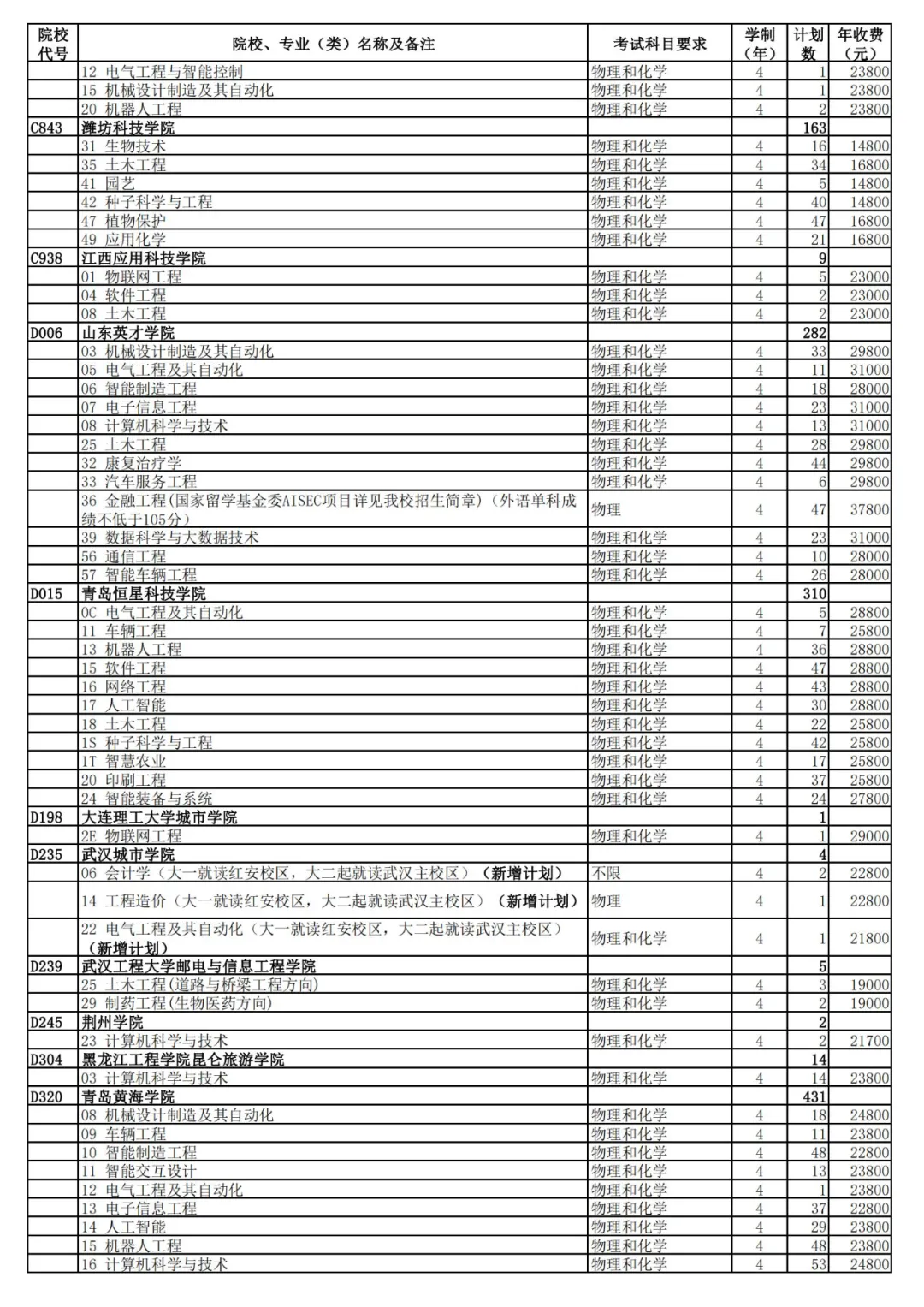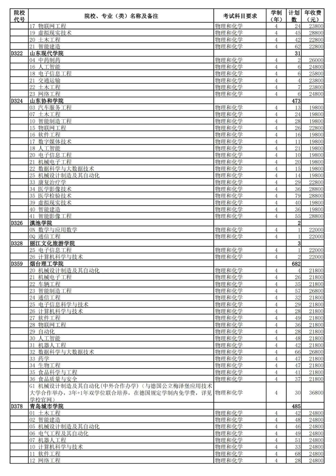 山东2024高考本科普通类常规批第2次志愿院校专业计划