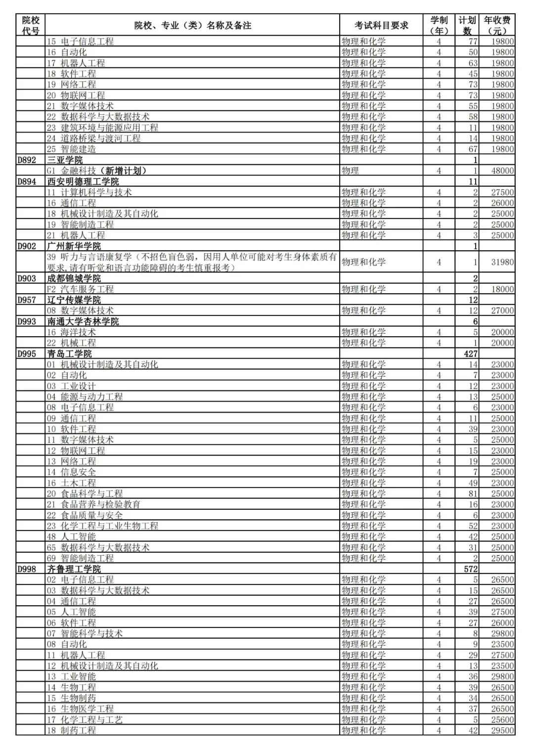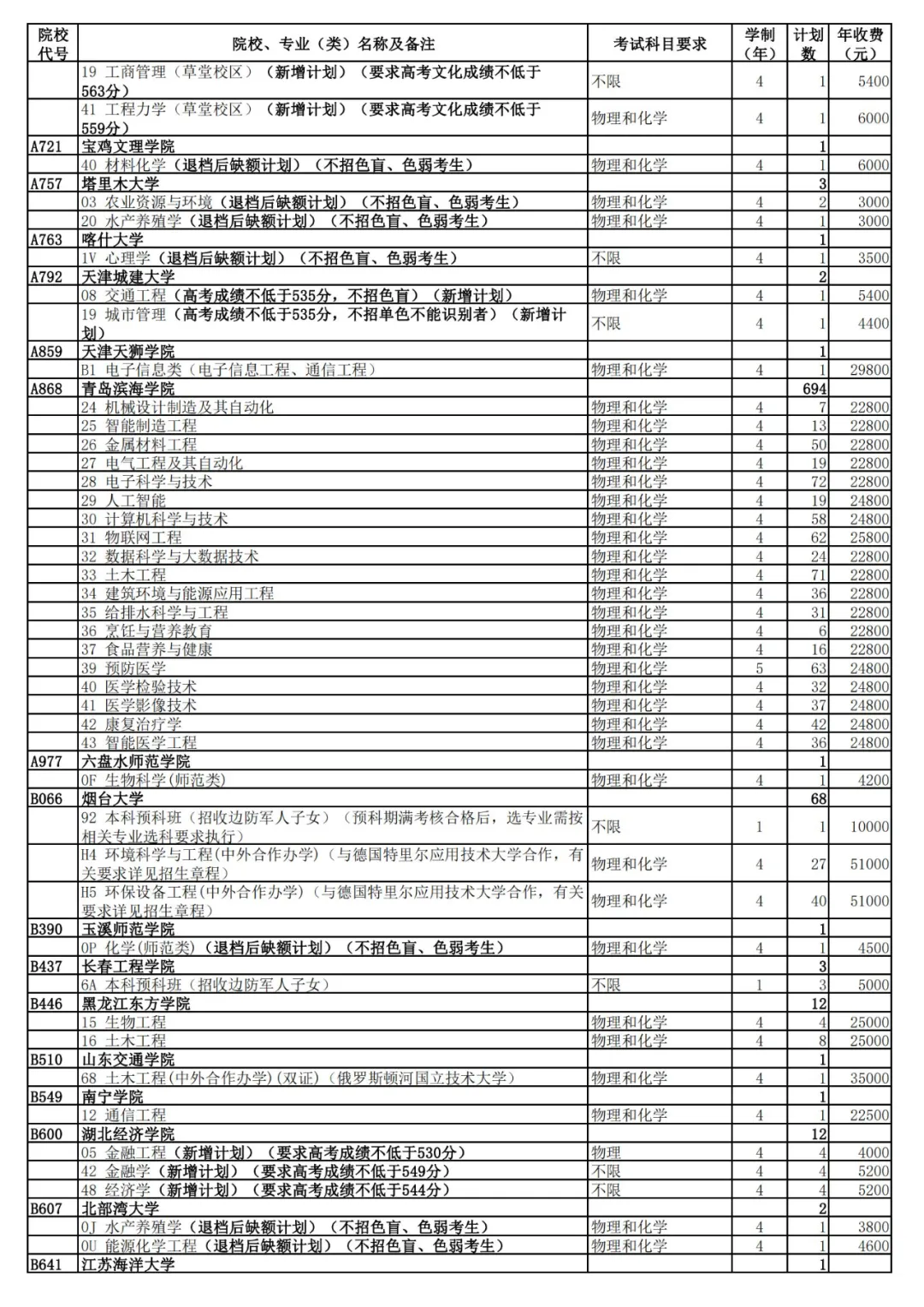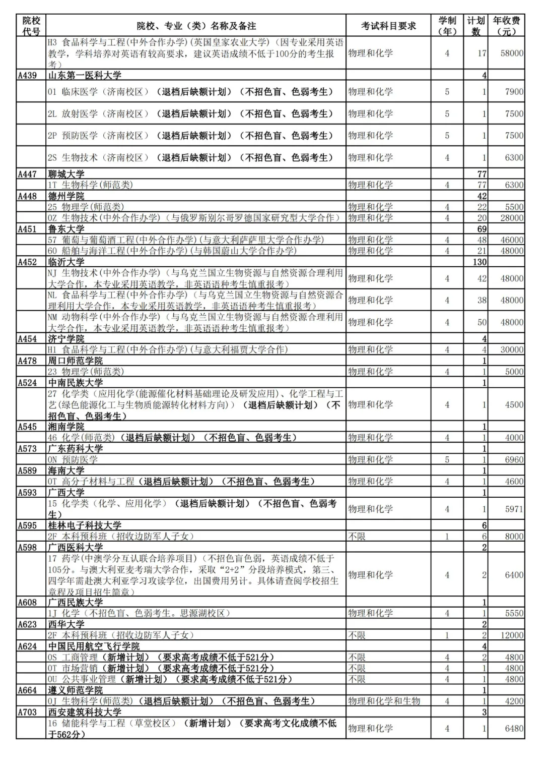 山东2024高考本科普通类常规批第2次志愿院校专业计划