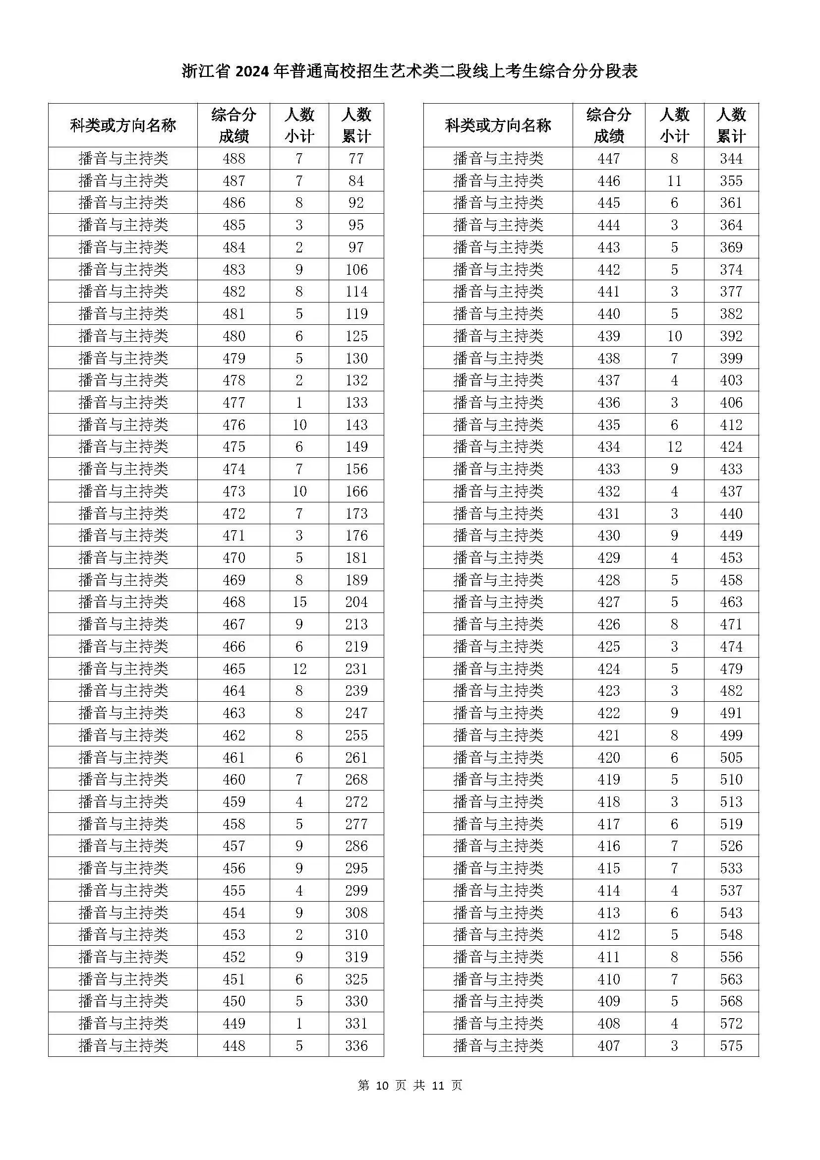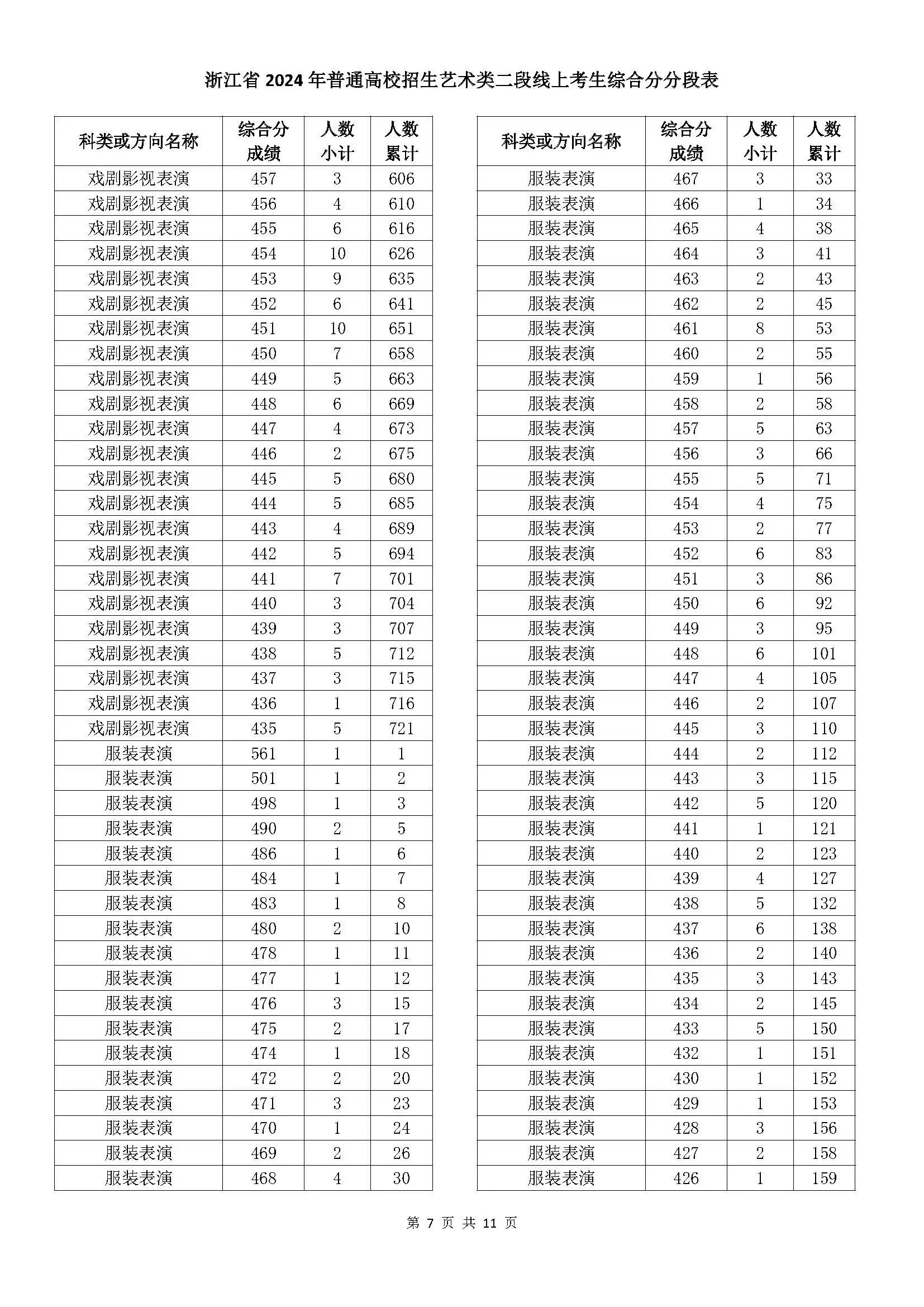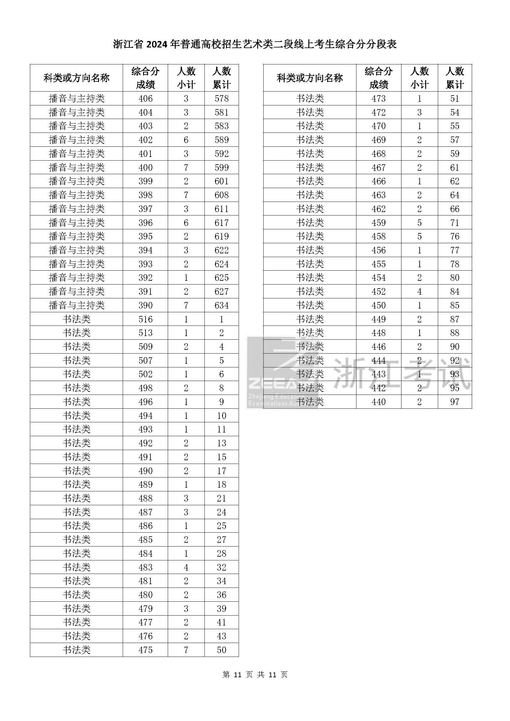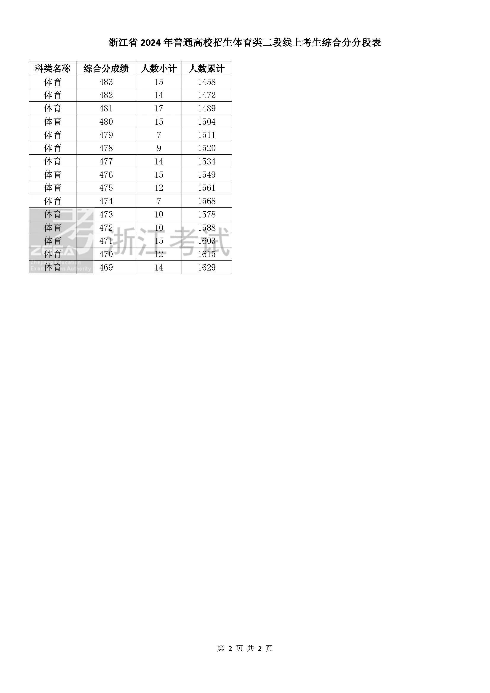 二段线上考生成绩分数段表(总分)浙江省2024年普通高校招生艺术类