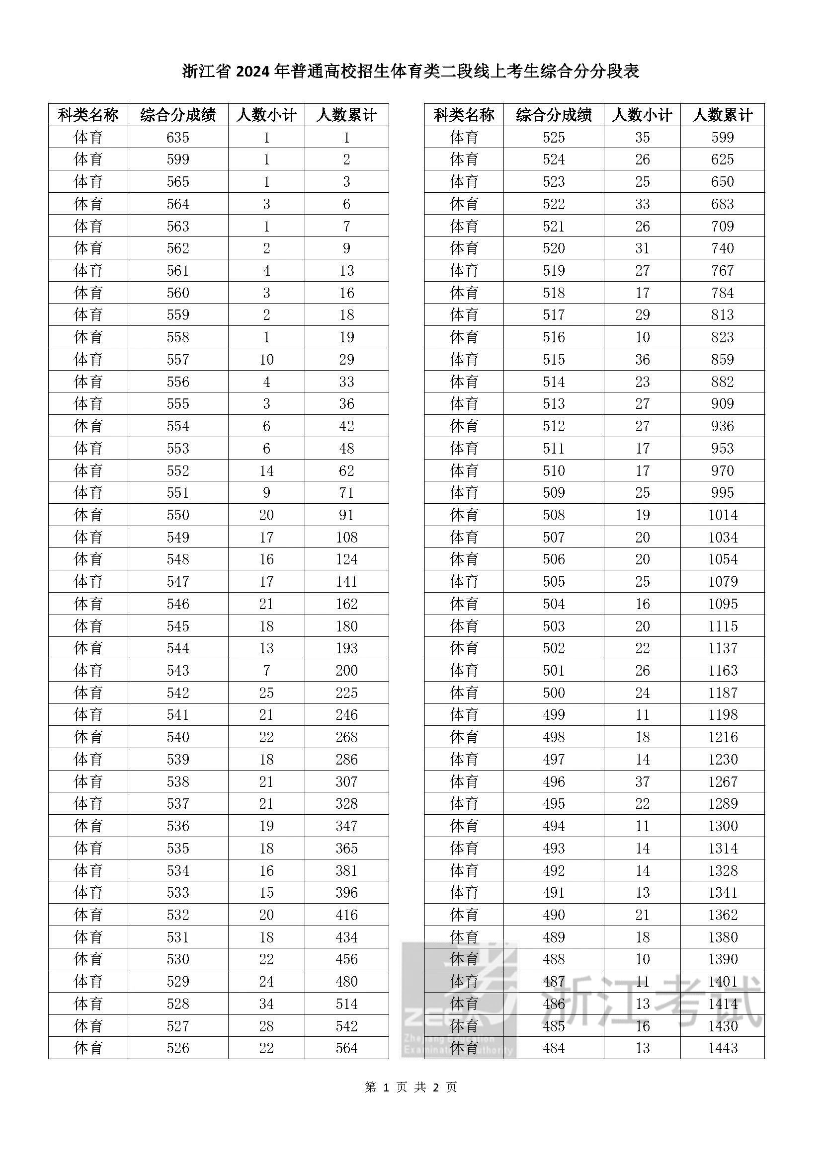 二段线上考生综合分分段表浙江省2024年普通高校