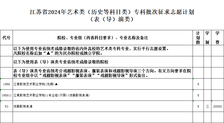 江苏2024年高考艺体类、定向军士专科批征求志愿计划