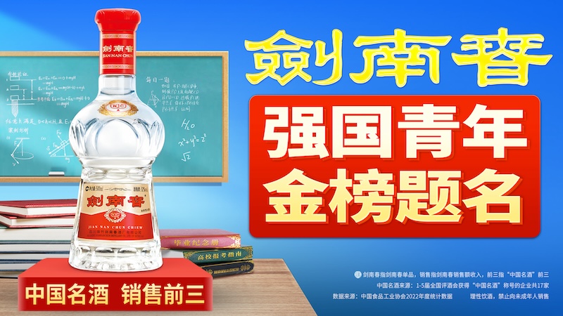 青春筑梦,国运昌盛,自信如阳,鲜亮生辉,勾勒出当代青年的风采轮廓;强国路上,敢为人先,骨气铮铮,底气十足,涌动着青年血脉中的澎湃力量。剑南春,千年佳酿,岁月悠悠中沉淀风华,非但未曾与时代脱节,反而在历史长河中引领风骚,更懂得时间的价值和意义,更懂得传承与创新需要一代代年轻人来承载。