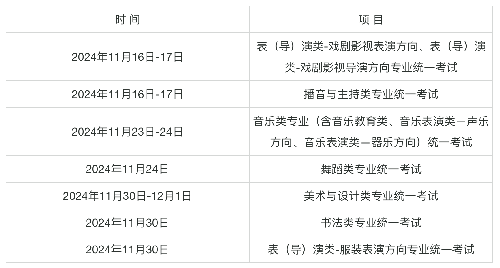 2025年艺术类专业统一考试报名与高考报名同时在网上进行,考前由考生自行下载打印准考证。考试时间安排如下: