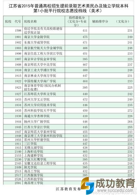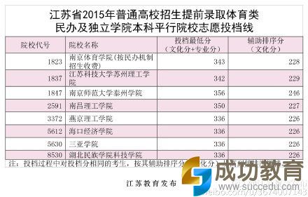 江苏省2015年普通高校招生提前录取艺术类民办及独立学院本科第1小批平行院校志愿投档线,以及江苏省2015年普通高校招生提前录取体育类民办及独立学院本科平行院校志愿投档线。