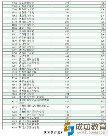 江苏省2015年普通高校招生艺术类、体育类投档线