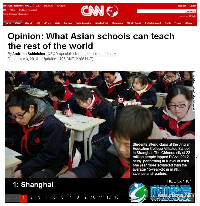 CNN编者按:本文谨代表安德烈亚·施莱歇尔本人观点,他是经济合作与发展组织(OECD)的教育政策特别顾问,从2000年开始负责该组织的国际教育排名,即国际学生评估项目(PISA,Program for International Student Assessment),他将会参与录制CNN一个名为“On China”的节目,由鲁可蒂(Kristie Lu Stout)主持,该节目将在12月中旬播出。