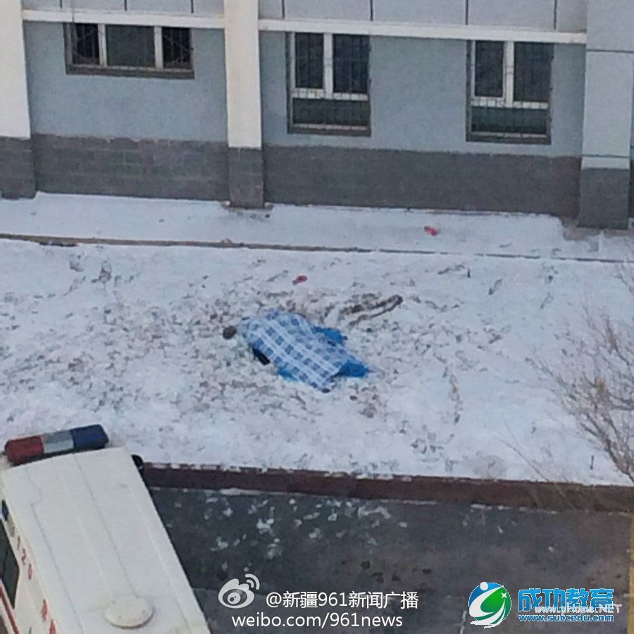 12月1日15时许,新疆财经大学商学院大四女生陈某从该校13号公寓9楼跳下,经医护人员确认该女生当场死亡。据目击者李同学说,该女生是从13号公寓9楼的厕所窗户上跳下,当时女生身穿黑色棉衣,蓝色牛仔裤,摔下来时,没有穿鞋子,侧身摔在了地上。