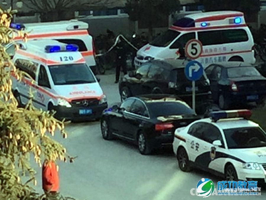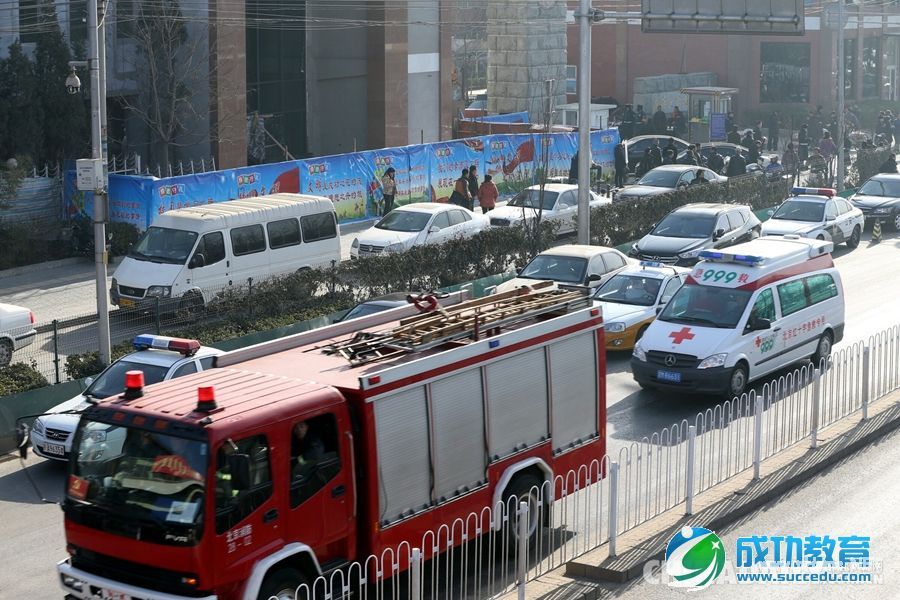 2014年12月29日,今天上午8点30分左右,北京海淀区清华附中一在建工地发生脚手架倒塌事故,多人伤亡。目击者称至少20辆消防,120、999急救车前往救援,多位伤者已送往医院。图为学校门前停着大批警车与救援车辆。