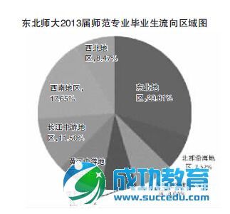 根据报告的统计数据显示,东北师范大学、西南大学、陕西师范大学、华中师范大学因生源主体大多来自东北、西南、西北、华中等地区,毕业生集中在这些地区(尤其是学校所在城市)的比例最大。北京、上海则因处在一线城市,这两个地区因而成为北京师范大学和华东师范大学2013届毕业生流向最多的区域。6所学校所在地周围以经济相对发达城市为中心的城市集群也是吸引毕业生聚集的重点区域。