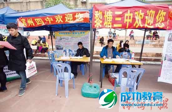 一些县区中学的展位前,来应聘的毕业生不是很多。 记者 徐冰摄