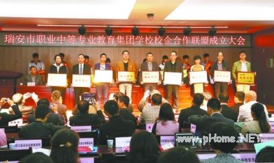 对于瑞安市职业中等专业教育集团学校来说,2014年4月11日是一个值得铭记的日子。与瑞安市工商联组建校企合作联盟并签订合作协议书,标志着该校正式构建起“政府主导、工商联协调、行业指导、企业参与、学校主体”的“五层联动”校企合作体系。工商联旗下的5900多家企业、22家行业协商会和15家镇街商会,成为该校推进深度校企合作的重要载体和力量支撑。