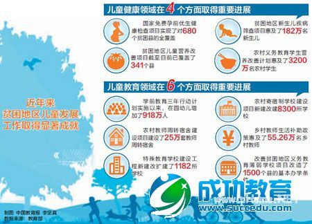 鲁昕说,党中央、国务院高度重视贫困地区儿童发展工作。按照中央领导的指示精神,教育部和卫生计生委会同12个部门共同编制了《国家贫困地区儿童发展规划(2014—2020年)》,去年12月25日由国务院办公厅印发。《规划》聚焦集中连片特困地区680个县从出生到义务教育阶段的农村儿童,在充分整合现有政策、项目、资金的基础上,研究提出了提高新生儿出生健康水平、改善儿童营养状况、加强儿童卫生医疗保健、增强儿童教育保障能力、加大特殊困难儿童教育和关爱5个方面的22项政策,明确了到2020年集中连片特困地区儿童发展整体水平基本达到全国平均水平的总体目标。