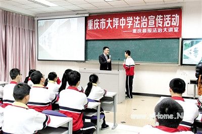 校园内外,怎样预防类似“下暴”这种危险侵害?有人来“找茬”,如何才算“正当防卫”?如果孩子这样问,你能给予正确的回答吗?为增强广大师生的法制观念和自我保护意识,3月20日,晨报教育工作室“家长大讲堂”栏目携手重庆志同律师事务所初云鄂律师来到大坪中学,在60分钟的时间里为该校初二年级的100余名中学生举行了一场别开生面的普法讲座。据悉,这也是继3月初成功走进金山小学后,“家长大讲堂”第二次携手资深律师走进校园普法。