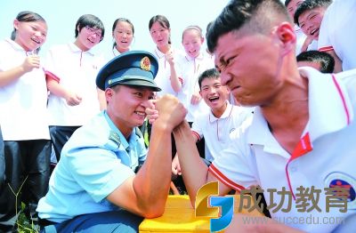 原标题:军训迎开学 东海县白塔高级中学操场上,几名学生在和军事教官一起做俯卧撑练体能。 东海县白塔高级中学操场上,一名学生和军事教官在掰腕子。 8月13日,江苏省东海县教育局邀请军事教官对全县5000余名高一新生开展为期7天的单兵队列动作等课目的军事训练,在提高学生军事素养的同时,培养他们的吃苦耐劳精神和组织纪