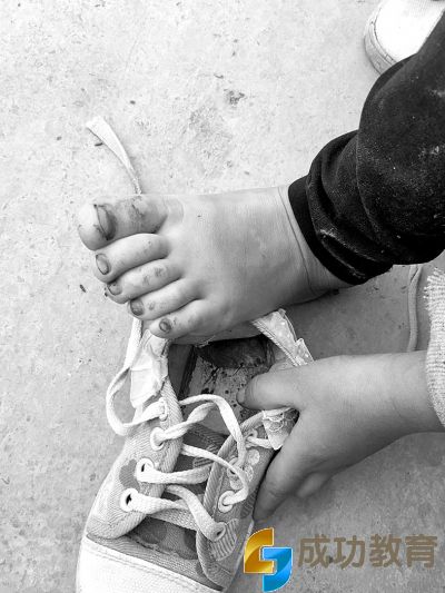 营山小学学生韩如意穿的鞋已经断了底,而她的脚上,无论春夏秋冬,几乎都没袜子穿。
