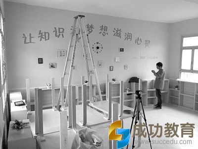 大伙纷纷拆开包裹,组装桌椅,粘贴壁纸,编码图书……
