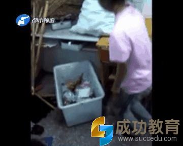 这段视频疑似发生在教室里,一个女孩高声呵斥身穿短袖校服的另一个女孩儿,要求她用嘴翻找垃圾箱里的棒棒糖。短袖女孩儿被迫多次俯身,将头探进垃圾筐,不时遭到蹬踹。
