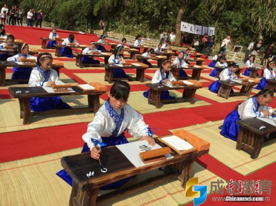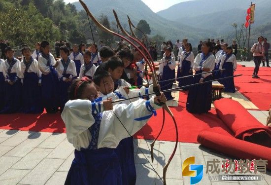 10月18日,浙江安吉县第六届“尚书文化节”期间,安吉尚书干村为数十名学子举办了盛大的“成童礼”,正值11、12岁的学子们通过舞象、学乐、颂诗、学射御等传统形式,闻父母年,知父母恩,立平生志,成童明义,纪念自己进入少年时代。 中新社记者 吴雨辰 摄