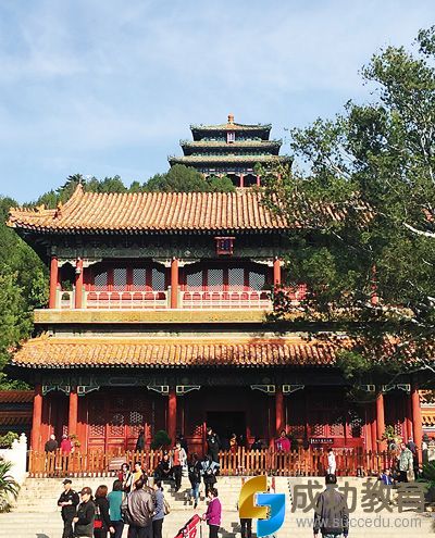 秋日里,景山上嘉树葱郁、鲜花盛开,登上万春亭可俯瞰全北京城,恢弘的故宫、北海、鼓楼,尽收眼底。