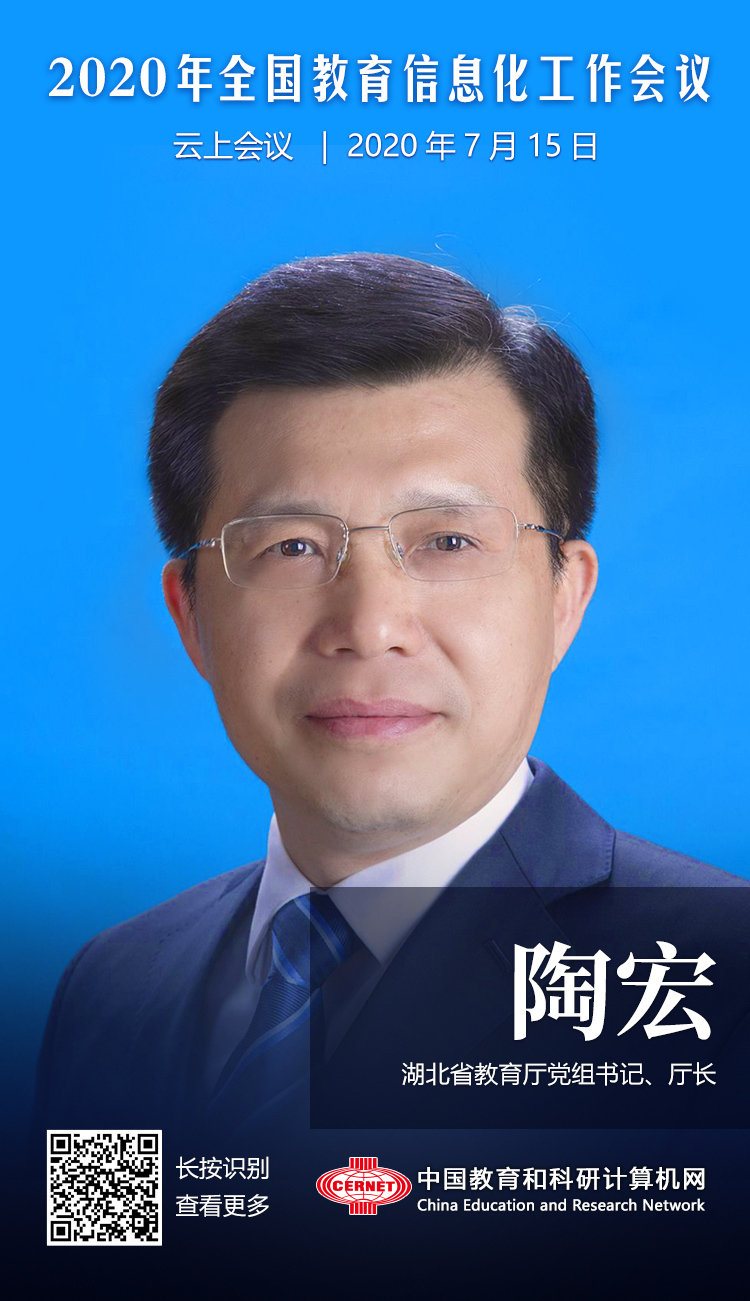 湖北省教育厅党组书记、厅长陶宏做了《在网课中育人 在战疫中成长》的发言。