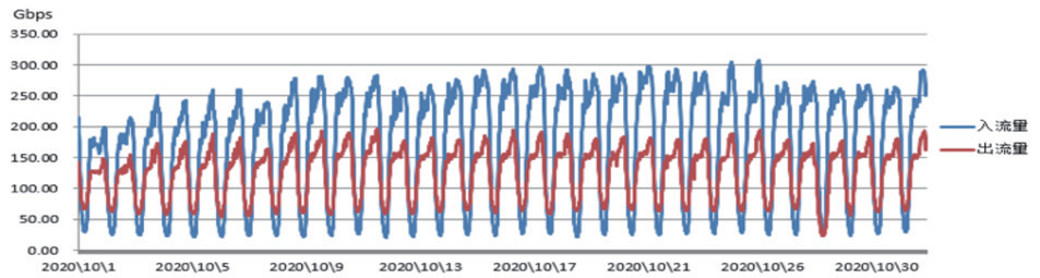 6NOC2020年10月:CERNET2出口入流量峰值118Gbps