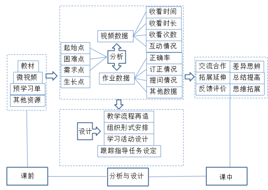 作为一线教师,崔老师对此感受颇深,“在课前阶段,教师的任务是提供适合的微视频资源(自制,或选择平台视频资源);设计预学习检测单;学习分析(通过学习平台或者问卷星进行收集与分析):发现学生学习起点、困难点、讨论点和生长点。目标是:教师通过为学生提供有效的学习资源,提高技术能力,熟练把握课程标准和教材,充分把握学情。学生的任务是:观看视频,完成视频相关练习;撰写学习笔记。其目标是学生可以判断自主学习的情况,明确自己能学会的和学不会的内容。”