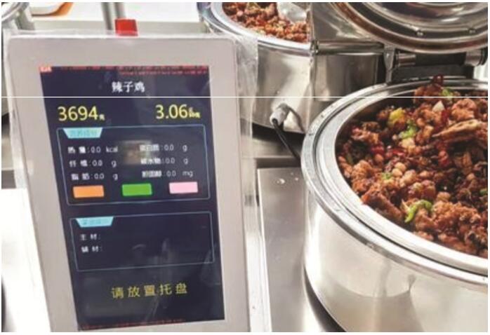 备餐台边的显示屏会显示打菜的金额、重量和热量,重量精准到克。按需取餐,按量计价,满足就餐者的个性化就餐需求,轻松实现光盘!