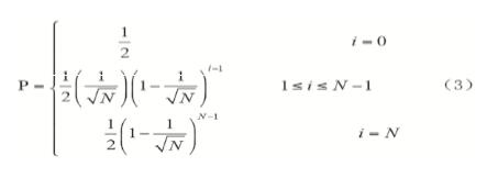 定义状态i(0≤i≤N)为移动节点在一个域停留的子网数,状态0表示停留在一个域之外的状态。假定状态i 的稳定状态概率为P,则P可由方程(3)得出。