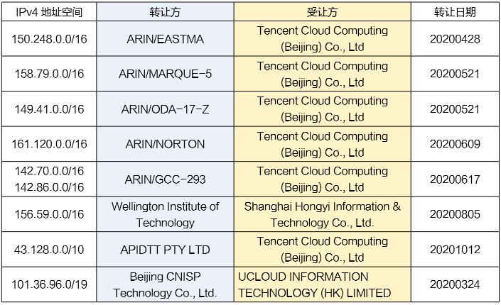 表2 IPv4地址中国境内转让部分记录
