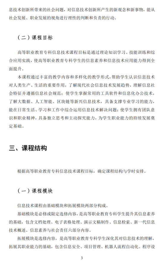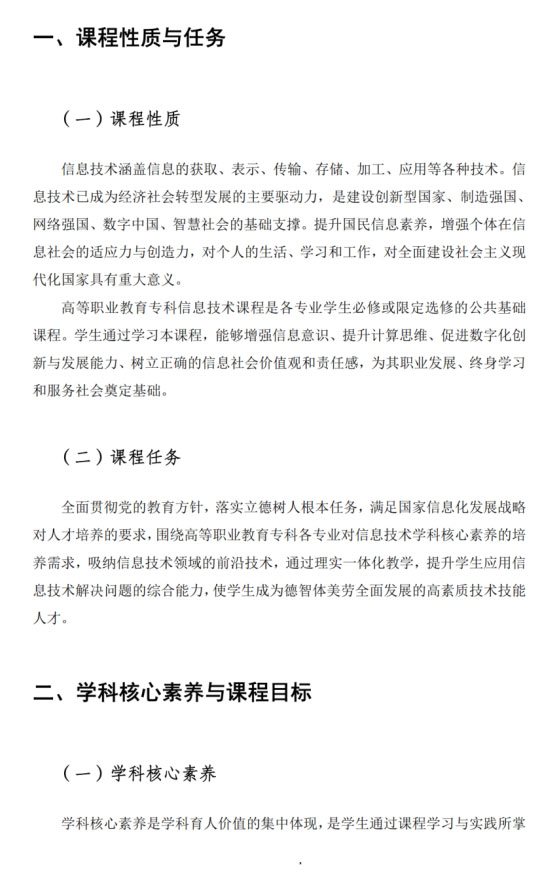 教育部发布高等职业教育专科信息技术课程标准(2021年版)