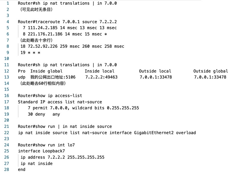 3. 源地址列表匹配的数据包,经过路由器 NAT 转换后,离开路由器的源地址和源端口都变了。