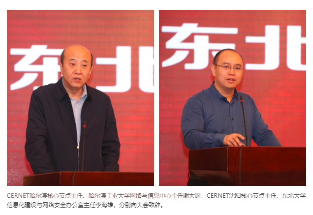CERNET哈尔滨核心节点主任、哈尔滨工业大学网络与信息中心主任谢大纲,CERNET东北地区节点主任、东北大学信息化建设与网络安全办公室主任李海雄,分别向大会致辞。他们认为,要加强东北地区高校间的沟通和交流,报团取暖、互帮互助、分享成功经验,和CERNET一起推动教育信息化发展。