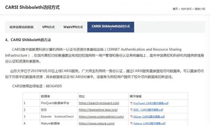 图5 山东大学图书馆CARSI服务界面