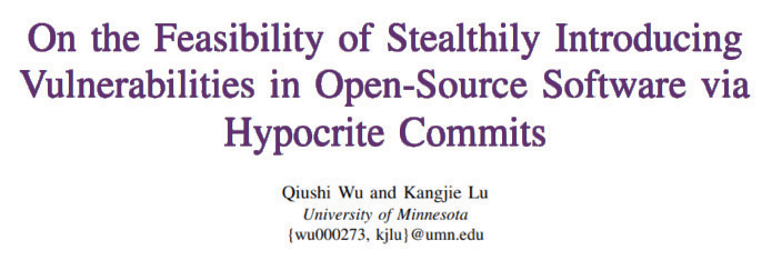2021年,卢康杰教授研究组在国际安全会议IEEE Security&Privacy上发表了一篇研究论文:《能否通过提交看似合理的补丁向项目中注入潜在的漏洞?》。