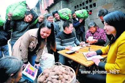 日前,嵩峰乡女大学生村官协助乡政府及时联系商家,帮助芋农打开销路。