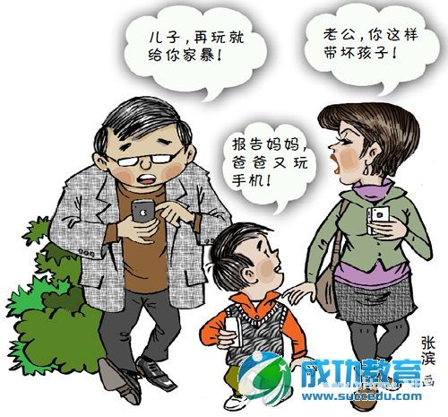 家长徐先生告诉记者,他的女儿还不到三岁,手机争夺战已经开始了。徐先生说,之前在女儿哭闹的时候,徐先生会用手机播放一些歌曲、或者好玩的动画片进行安慰。女儿知道手机好玩后,手机争夺战,就这样不知不觉地开始了。“我有时候随意地把手机放在桌面上,她会乐呵呵地跑过来拿。后来居然学会了手指向右划一下解锁。”徐先生说,从这时开始,他便有意识地将手机藏在女儿看不到的地方,但难免有时候会用到手机。有一天,徐先生一边吃饭一边发短信,女儿看到了,说:“爸爸你一边吃饭一边玩手机不对。”徐先生一听,便把手机放到一边,决定给女儿做个好榜样,专心吃饭。哪知女儿小手一伸就把手机拿走了。徐先生问女儿:“你不让我玩为什么你自己却玩?”女儿理直气壮地说:“因为我没在吃饭呀!”